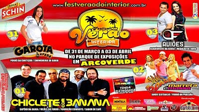 Sem dúvida alguma a atração mais aguardada do evento é Bell Marques e o Chiclete com Banana, que diga-se de passagem já não vem a cidade a mais de 20 anos, o 1° Festival de Verão do Interior, irá acontecer de 31 de março a 03 de abril no Parque de Exposições Severiano de Brito Freire, e terá como atrações principais as bandas Garota Safada, Chiclete com Banana, Saia Rodada, Marreta é Massa, Aviões do Forró entre outras atrações.